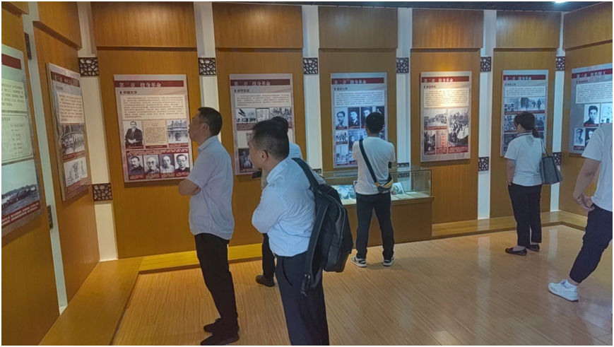 講解員帶領(lǐng)大家參觀高敬亭烈士紀(jì)念館,新四軍第四支隊(duì)是一支傳奇的部隊(duì),高敬亭更是位傳奇的人物,在內(nèi)無糧草,外無援兵的艱難環(huán)境下,仍堅(jiān)持三年艱苦卓絕的敵后游擊戰(zhàn),以不足2000人的兵力,轉(zhuǎn)戰(zhàn)于湖北、河南、安徽三省的45個(gè)縣,與敵人大小戰(zhàn)斗數(shù)百次,牽制敵正規(guī)軍68個(gè)團(tuán),粉碎敵人的反復(fù)“清剿”,支援主力紅軍的戰(zhàn)略轉(zhuǎn)移,配合了南方紅軍的游擊戰(zhàn)爭。在抗日戰(zhàn)爭期間,成功的組織了蔣家河伏擊戰(zhàn)等著名戰(zhàn)斗,打擊了日寇的囂張氣焰,為抗日民族統(tǒng)一戰(zhàn)線作出了巨大貢獻(xiàn)。